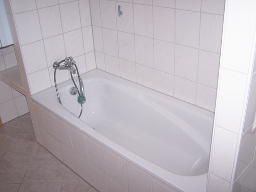 Bad wurde ebenfalls gefliest und hat einen offenen Raumteiler integriert.