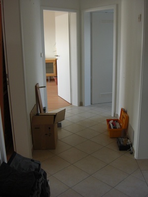 In Küche und Bad liegen Fliessen. Ansonsten ist die komplette Wohnung mit hellem Laminat ausgestattet. Rölladen an den Fenstern, Gasetagenheizung, Bad mit Wanne und Separater Duschkabine und großem Doppelwaschbecken.