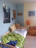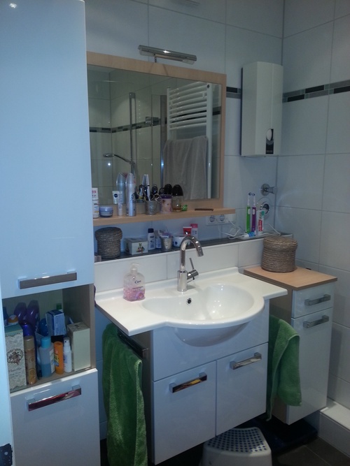 90m2 im sechsten Stock eines 7-stöckigen Hochhauses (Bj. 1966, mit Aufzug) in gepflegter Wohnanlage, letzte große Renovierung 2009 (neues Dusch-Bad, WC, hochwertige Einbauküche, Buche-Laminat in Schlaf- und Wohnräumen und im Flur). Zu der Wohnung gehören eine Garage (neues Tor 2011), ein Kellerraum und ein großer Abstellraum auf dem Dachboden. Im Haus gibt es außerdem einen Fahrradkeller, die Aussicht ist herrlich.