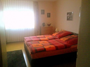Das großzügige Schlafzimmer verfügt über Korklaminat.