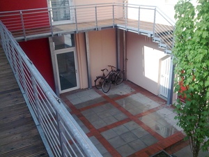 Mit Innenhof zum abstellen ein Fahrrades. Prakmöglichkeiten sind am Gebäude vorhanden.