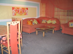 Wohnzimmer, Schlafzimmer, 2 Kinderzmmer, Bad, Dusche, Küche und Balkon.