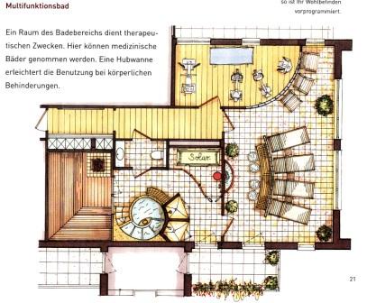 Gemeinschaftsräume: Multifunktionsbad (Sauna mit Tauchbecken und Ruheraum), Fitnessraum, mallorquinisches Bad. Großzügiger Gemeinschaftsbereich mit Klubraum (Mittagstisch möglich), 600 m² großer Dachgarten, Gäste-Apartments, etc. Service-Leistungen: Haus-Notruf-Anlage in jeder Wohnung, Hilfe in persönlichen und behördlichen Angelegenheiten, Vermittlung von Dienst-und Pflegeleistungen, regelmäßig besetztes Service-Center etc.
