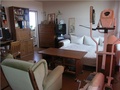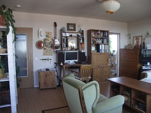 Im Wohnzimmer gibt es ein gemütliches 3-teiliges Schlafsofa 200 x 220, das man auf Wunsch ausbauen kann, einen Wohnzimmertisch, Computertisch mit einem Computersessel, einen Bücherschrank, Fehrnseher von „Bang und Olufsen“ mit einem DVD-Player, Ohrenbackensessel und eine Kommode. Es sind ein Internet-DSL-Anschluß mit einem WLan-Router vorhanden. Alle Geräte mit Fernbedienung.