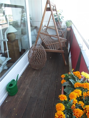 Die Wohnung ist sehr schön geschnitten. Es gibt ein großes und helles Wohnzimmer mit einem Fenster, das 4 Meter lang und 2 Meter hoch ist, mit einem Balkon und einer Hollywoodschaukel aus dem Zeddernholz und Blumen draussen auf dem Balkon. Der Balkon geht aus dem Zimmer in einen großen, ruhigen und schönen Hinterhof, an dem der Mühlenkamp Kanal vorbei fliesst.