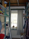 o Dieser begehbare Kleiderschrank besitzt große Ablage-/Hängevorrichtungen auf beiden Seiten und ein Fenster an der Stirnseite und ist somit auch mit Tageslicht versorgt.