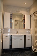 Beim Betreten der Wohnung gelangen Sie in einen großzügig geschnittenen Eingangsbereich, der als Esszimmer genutzt werden kann. Von dort aus erreichen Sie die voll ausgestattete Einbauküche, das sehr geräumige Wohnzimmer, ein kleineres Arbeitszimmer, das Schlafzimmer mit vorgelagertem begehbaren Kleiderschrank sowie ein weiteres Zimmer mit Blick zum Innenhof. Auch das hochwertig ausgestatte Badezimmer und die im selben Stil gehaltene Toilette sind von diesem zentralen Bereich direkt erreichbar. Die neuen Elektrogeräte in der Küche (Herd mit Ceranfeld, Kühl-/Gefrierkombination und Spülmaschine) sind im Mietpreis enthalten. Im Zuge der Renovierungsarbeiten wurden die Bademöbel sowie die Innentüren erneuert; der Parkettboden wurde abgeschliffen und versiegelt. Die Loggia ist verglast. Alle Fenster sind sehr hochwertig. Zur Wohnung gehört auch ein geräumiges Kellerabteil.