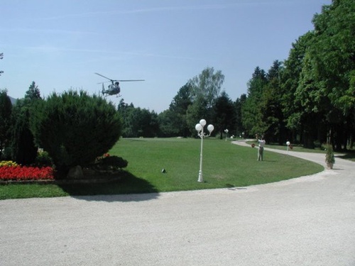 Umgeben wird das ehemalige Jagdschloss von 400.000 m² Parkanlagen mit exotischem Baumbestand, Privatflugplatz (Landebahn 800 m), einem Musterweingut mit Küferei,