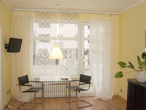 Das großzügig geschnittene, sehr stilvoll eingerichtete 1-Zimmerappartment hat eine Größe von 34 m². Neben dem Wohnzimmer befindet sich eine Diele mit einem geräumigen Einbauschrank, ein Badezimmer und eine voll eingerichtete Küche.