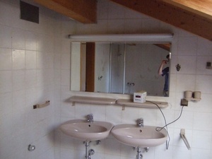 Bad mit zwei Waschbecken, Dusche, Badewanne und Waschmaschinenanschluss;