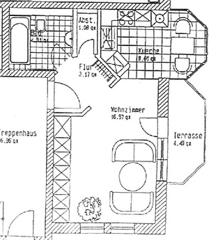 - Laminat im Wohnraum<br>- Bad und Küche gefließt<br>- Bad mit Wanne <br>- Waschmaschinenanschluß in der Küche<br>- Zugang zum Balkon über Wohnraum<br>- praktischer Abstellraum in der Wohnung<br>