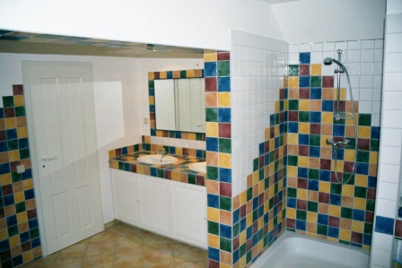 Kamin, EInbauküche, Rolladen, Terrasse, Fliesen