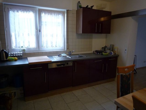 Laminat (4 Monate alt) und Fliesen, SAT, Einbauküche (4 Monate alt) 950 € Abstand, Tageslichtbad mit Badewanne, 10 qm Kellerraum, Garage mit Grube