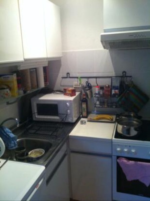 Mitvermietet werden können auch ein Schreibtisch und ein Schreibtischstuhl, ein Sofa (2-Sitzer), ein Schuhregal, ein Staubsager und eine Waschmaschine sowie Geschirr.