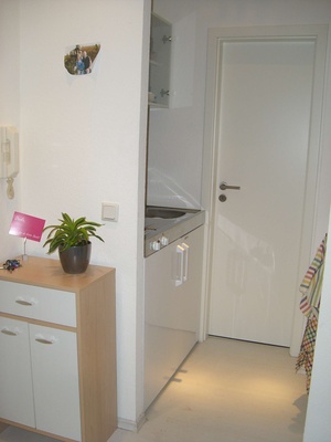 Die Wohnung ist mit einer neuen Pantryküche von der Firma Bauknecht ausgestattet. Es gibt Verstaumöglichkeiten über und gegenüber der Kochzeile. Die Wohnung wird über einen Nachtspeicher beheizt. Im Bad sind eine Dusche und ein separates Heizsystem. In der gesamten Wohnung wurde Laminat verlegt.