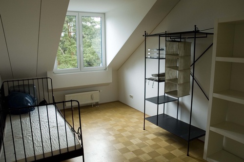 Mehrfamilienhaus, Dachgeschoßwohnung in der 5. Etage, leider nicht Wg geeignet, großer Flur mit Essnische, 2 kleine Zimmer (11 qm²) und 1 großes Zimmer (22 qm²) und ein sehr kleines Zimmer (9 qm²), sehr hell und weitläufig, perfekt für Familien