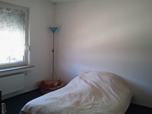 Die Wohnung ist hell und entspricht modernen Wohnansprüchen. Das Schlafzimmer bietet Platz für ein großes Bett und Kleiderschrank. Zur Wohnung gehört weiterhin eine Garage, die bei Bedarf separat anzumieten ist. Ein eigener Kellerraum bietet Platz zum Lagern, zum Waschen und Trocknen steht ein Gemeinschaftskeller zur Verfügung.