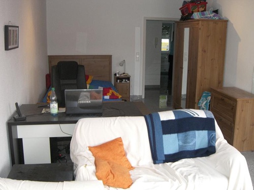 Zimmer ist komplett möbliert (siehe Fotos); ebenso wie Küche und Bad.(Fernseher wird gegen grossen Röhrenfernseher ausgetauscht!)