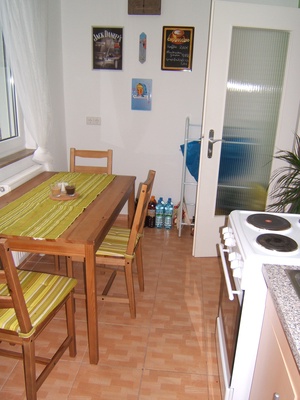 Küche (Herd, Ofen, Spüle, Schränke, Kühlschrank, Esstisch,...)