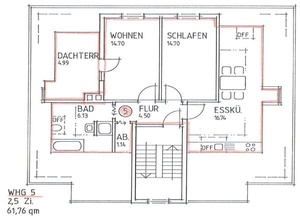 DG: 2,5 Zimmer-Wohnung mit Dachterrasse, Bad mit Wanne, Dusche und WC