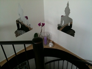 Dann geht es über eine Wendeltreppe in die 2. Etage, wo sich 2 Schlafzimmer und das Bad mit Wanne befindet.