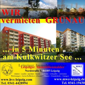 Leipzig-Grünau WK 8 hat eine sehr gute Infrastruktur, man wohnt am Rande der Stadt in unmittelbarer Nähe zum Kulkwitzer See und dem dazugehörigen Naherholungs- und Naturschutzgebiet. (Nur 10 Minuten Fußweg bis zum See)