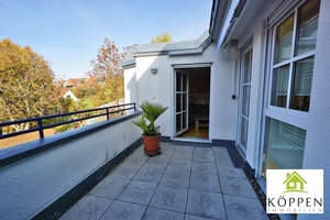 Der sonnige Süd-Westbalkon ist über Wohn- und Esszimmer zugänglich und ist mit einer elektrischen Markise ausgestattet, die ausgefahren sehr guten Sonnen- und Sichtschutz bietet.