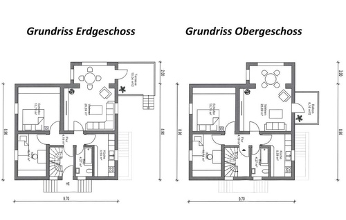 Im 1. OG ist ebenfalls eine 3-Zimmer-Wohnung mit demselben Grundriss und hat ebenfalls eine Wohnfläche von 75 qm(vermietet).