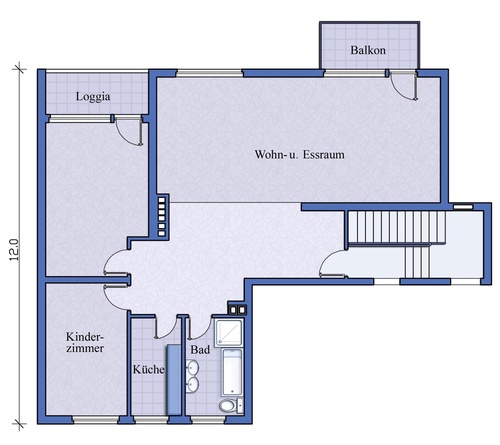 Großzügig geschnittene und insgesamt sehr helle Wohnung im 3 OG eines gepflegtem 14 Parteien Hauses. Die gesamte Wohnung wurde umfangreich saniert. Modernes Tageslichtbad mit Badewanne und Waschmaschienenanschluss. Die ca. 6 m² große Küche mit Blick ins Grüne. Reichlich Platz auch in dem ca. 18m² grossen Schlafzimmer. Daneben ein etwas kleineres Kinder- und/oder Gästezimmer mit Zugang zur Loggia. Neben zwei Schlafzimmern bildet das große und lichtdurchflutete Wohn-/Esszimmer mit Sonnenbalkon das Zentrum des Wohnens. Der Clou: Das 70 m² große Wohnzimmer können Sie falls erwünscht in 2 getrennte Räume umwandeln. Zur Wohnung gehört ein Kellerraum, ein PKW-Stellplatz im Hinterhof kann bei Bedarf angemietet werden (Euro 30,00 mtl.). Angenehm niedrig auch der Energieverbrauchskennwert für dieses Gebäude - 101 KWh (m²a).