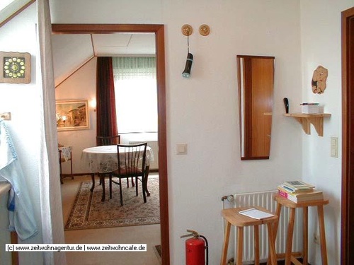 70/80er Baujahr/ sehr ruhig/ renoviert/ helles Dachgeschoß/ leichte Schrägen/ gemischt möbliert/ gesamter Hausstand/ kleine Küche/ Wannenbad/ TV/ Kabel/Satellit/ Telefonanschluss, muß vom Mieter angemeldet werden/ Teppich/ Fliesen/ Zentralheizung/ Garten Mitbenutzung/ 3-8 Min. zu Bahn/Bus/ Linie(n): 818/ Haltestelle(n): Rüttersweg/ Stellplatz/ inkl. wöchentliche Reinigung/ 14-tägig Bettwäschewechsel/ Kaution 2 MM/