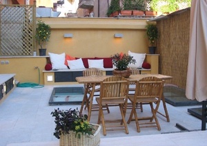 über eine große Terrasse zur Garten - und einen Balkon zum Vorderseite. Zur Ausstattung gehört eine neue Einbauküche, ein Kamin, sowie eine geräumiges Vollbad mit Waschmaschine und Trockner, Durch die hohen Räume mit zum teil Decken hohen Fenster ist die Wohnung hell und freundlich.