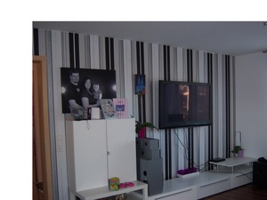 Flur-Bad- und Küche sind gefliest. In den Schlaf-Kinder-und Wohnzimmer haben wir Laminat verlegt, der nach Absprache, wie die Duschkabine ,in der Wohnung bleiben kann.