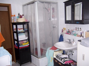 Diese besteht aus drei schön geschnittenen, hellen Zimmern und ist mit mahagonifarbenen Laminat ausgelegt. Das Bad ist mit zwei Fenstern, einer Wanne und einer Dusche sowie einem Waschmaschinenanschluss ausgestattet. Der Boden ist gefließt. Die Küche hat ebenfalls ein Fenster und ist zudem mit einem seperatem Gasherdanschluss ausgestattet.