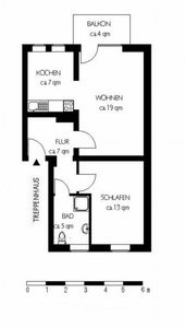 Die Wohnung hat 2,5 Zimmer und insgesamt 50,5 m².