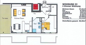 - 2-Zimmer-Penthaus Nr. 22 mit 86,56 m² - KP 214.100,-- €