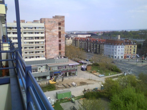 -9.0G, Sicht von Balkon aus Juri-Gagarin-Ring, Hbf. ..., hinter sieht man die Innenstadt, Dom, Kirchen...