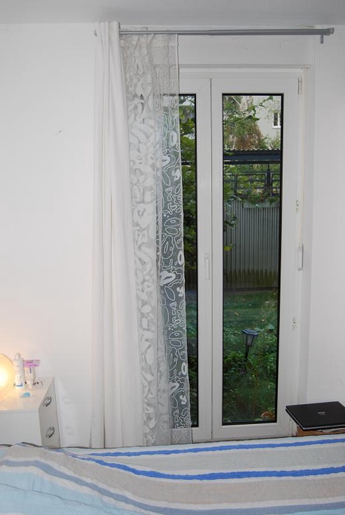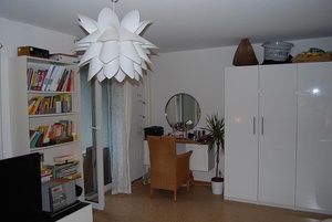 Es handelt sich um eine 1-Zimmer-Wohnung im Erdgeschoss eines 2005 erbauten Mehrfamilienhauses, welches sich in einem Innenhof befindet. Zu dem Objekt gehören eine Terrasse und ein Garten mit Teich, der ringsum durch eine hohe Hecke geschlossen ist.