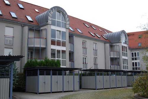Äußere Süd-West-Stadt. In einem Innenhof eines sehr schönen Neubau-Viertels. Sehr gute Anbindung an Bus und Autobahn. Einkaufmöglichkeiten in Fußnähe.