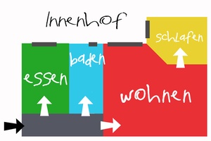 ruhige 1,5 Zimmerwohnung, Seitenflügel, im grünen Innenhof mit kleinem Garten anschließend