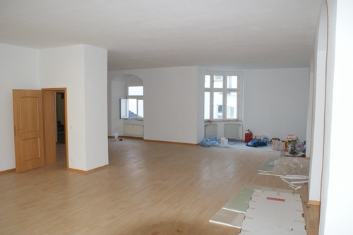 Die 140 qm gliedern sich aktuell in einen kleinen Raum von 40qm mit Küchenanschluss und einen großen Raum mit 100 qm, wie dem Grundriss zu entnehmen ist. Die Planungen sehen vor, ein Hauptbad mit Fenster und Badewanne von 15 qm zu errichten, einen 10qm großen begehbaren Kleiderschrank oder anderweitig zu nutzenenden Raum einzubauen, sowie die Küche mit 18qm abzutrennen. Der übrig bleibende Raum von 80qm ist noch einmal unterteilbar mit Flur wie in dem Entwurf erkennbar ist. Das ist mit dem Mieter absprechbar.