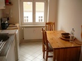 4. Etage (Fahrstuhl), ca. 60 qm, Flur, Küche (komplett eingerichtet), Badewanne mit Dusche, WC, Kellerverschlag, Schlafzimmer (Breites Bett) zur Straße mit kleinem Balkon, Wohnzimmer, Sicht auf Hof mit Bäumen. Bus 3 Min., U+S-Bahn Pankow in der Nähe, Zentrum Pankow Breite Straße mit allen Einkaufsmöglichkeiten 10 Minuten.