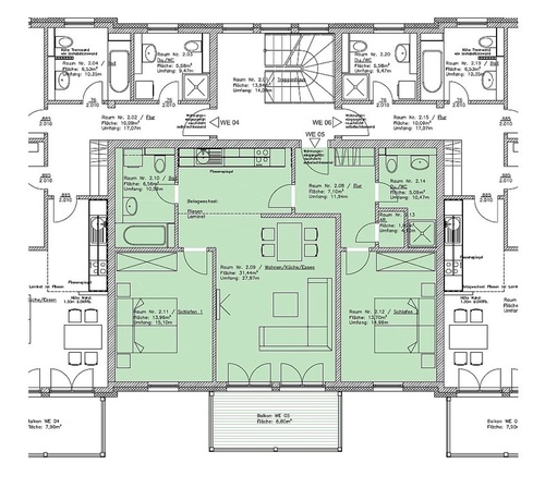 Das Gebäude ist voll unterkellert. Für jede Wohnung wird so ein Keller mit einer Grundfläche von 17 bis 21 m2 geschaffen. Über dem Kellergeschoss entstehen die beiden Vollgeschosse
