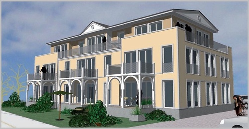 (EG und 1. OG) mit je 3 Wohnungen und jeweils ca. 83 bis 86 m2 Wohnfläche. Als oberstes Geschoss entsteht ein eingerücktes Staffelgeschoss mit 2 Penthouse-Wohnungen auf je 102 m², gekrönt wird die Etage von einer umlaufenden Terrasse.