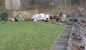 Zu der Wohnung gehört ein Garten mit Grillplatz und Terrasse direkt hinter dem Haus. Ausserdem steht eine Garage und ein Stellplatz zur Verfügung.