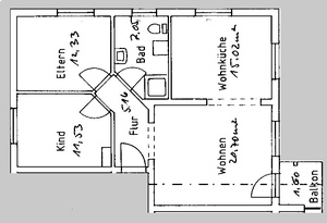 3 Zimmer Wohnung, Küche, Bad, Balkon, Garage, Kellerraum.