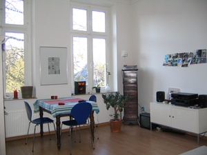 Die Wohnung besteht aus 1 Zimmer, Küche mit Einbauküche, geräumiger Diele, weißes Bad mit Dusche, Laminatboden, Altbau mit Stuck, alles saniert, sehr nette Nachbarn im Haus, Garten und Waschmaschine zur Mitbenutzung. Wohnung geht nach hinten raus und ist daher sehr still, Ausblick ins Briller Viertel und dessen Gärten.