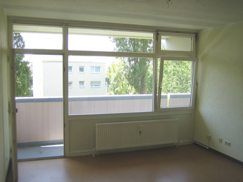 Vermietet wird eine offene und sonnige 2 Zimmer Wohnung im 5. Stock eines 15-stöckigen Hochhauses mit großem Südwestbalkon.