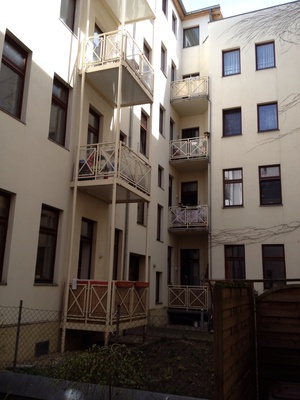 Eigentumswohnung in Gründerzeit-Mehrfamilienhaus mit Balkon, Großzügige freundliche 4-R-Wohnung im 2OG .Bad mit Wanne sowie Fenster ,grosse Küche.schönes Gäste WC mit Dusche ! Balkon zum Hof !Alle Wohnräume sind mit Laminat. verlegt .