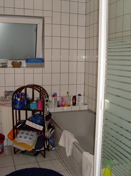Im Badezimmer ist ein Hänge-WC, Badewanne und separate Dusche! Spiegel bleibt drin! Einige Lampen sind bereits in der Wohnung und bleiben drin! Terrassenmöbel stehen zur Verfügung.