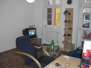Wohnzimmer: TV, DSl, Telefon, Schlafcouch